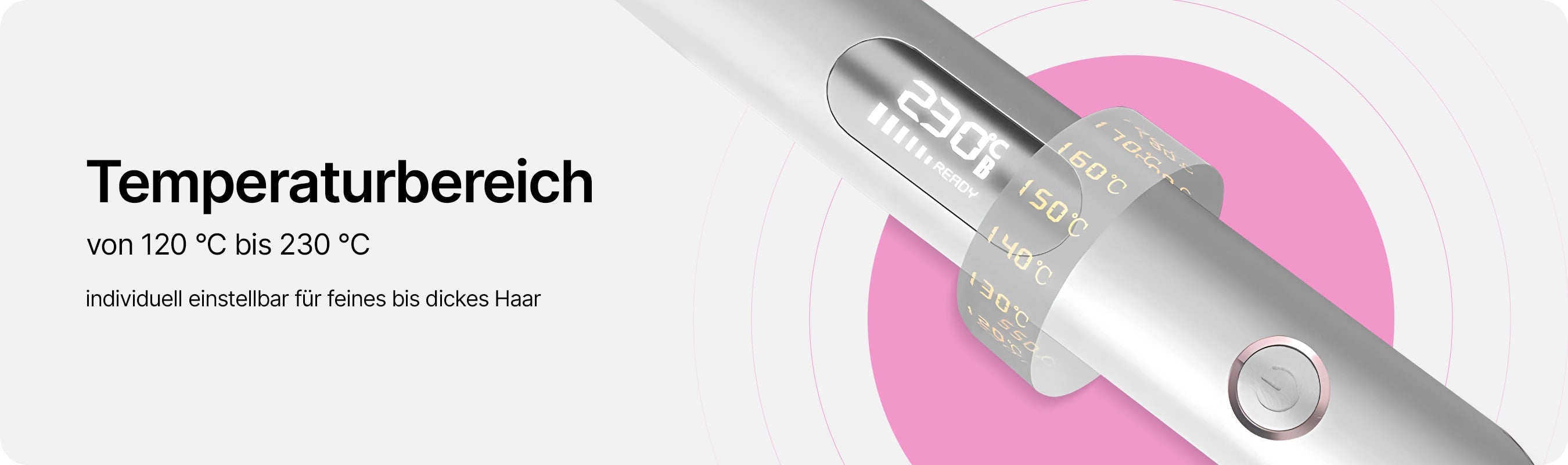 ✓ 12 Temperaturstufen mit Schutzfunktion: Wählen Sie zwischen 120 °C und 230 °C – abgestimmt auf Ihren Haartyp. Integrierte Temperatursensoren verhindern Überhitzung und schützen Ihr Haar zuverlässig.