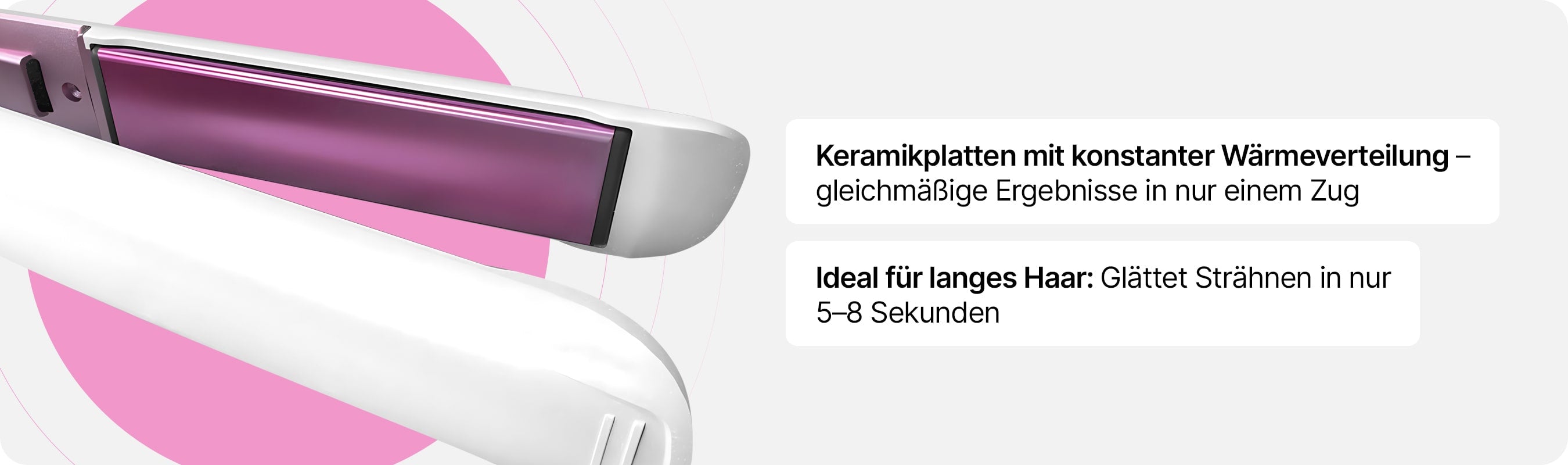 ✓ Glätten & Locken mit nur einem Gerät: Dank des abgerundeten Designs eignet sich das Glätteisen perfekt zum Glätten und Stylen von Locken. Die schnelle Aufheizzeit ermöglicht ein effizientes Styling in wenigen Minuten.